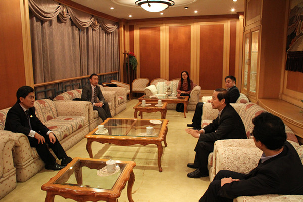 中国-东盟中心人事官员赖兴、校教务处副处长张廷佺、英语学院院长查明建、英语学院党总支副书记徐丽云会见时在座。