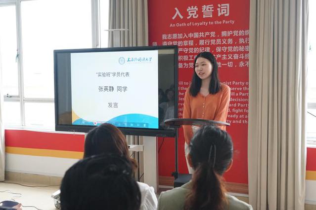随后,第一期“人文实验班”学员张英静作为学生代表发言。她表示,进入英语学院学习近两年来,她深刻地体会到上外英语专业人文化教育改革的力量,对英语专业的魅力和意义有着越来越深的认识。她认识到,学习人文是不断更新思想、活跃思想、深化思想的过程。“人文实验班”将扩大学生的人文和学术视野,提升人文修养和专业能力,引导学生明确未来的研究方向,为成为人文社会学科领域的研究型人才打下扎实的学术基础。