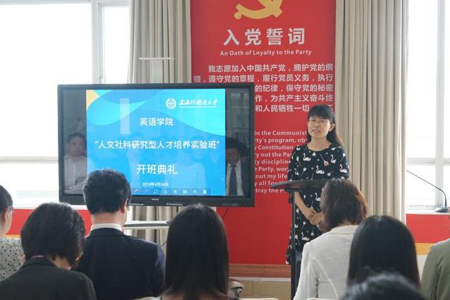 杨雪莲书记首先介绍了“人文实验班”从酝酿到正式开班的历程,并宣读了入选英语学院首期“人文实验班”同学的名单,向他们表示了祝贺。