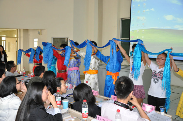 支教队的展示精彩纷呈,以生动多样的形式展示了自己队伍大到队伍结构、团队文化、教学计划等方面,小到团队安全、财务预算等细节。更有部分队伍极具特色,增加了手语表演、队歌演唱、团队周边展示等环节。最后一支队伍——永恒之火身着民族服饰,唱着蒙语歌曲入场,给评委老师献上了哈达,更是赢得了阵阵掌声。丰富精彩的展示吸引了评委老师的兴趣,评委也针对每一支队伍的特点极有针对性地提出了相应问题,进一步督促各支队伍完善暑期社会实践筹备过程。