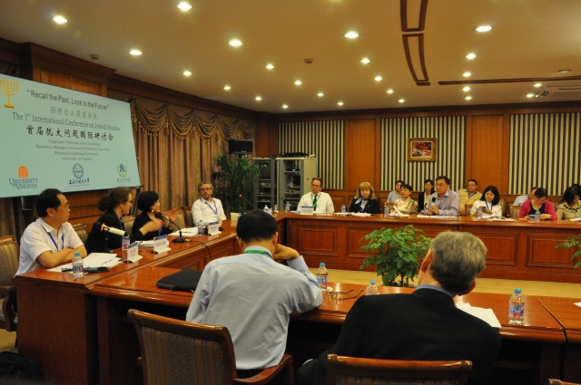 6月7日下午研讨会转赴浙江工商大学会场,浙江工商大学校长陈寿灿致欢迎辞。次日举行了4场大会发言。涉及的议题有中以文化和教育交流、中犹习俗比较、古代犹太社区和历史研究、中国的犹太教学、犹太会堂发展、犹太离散史、美国现代犹太文学、索尔·贝娄文学研究等。这种跨学科研讨会突破了学科局限,展现了跨学科研究与合作的广阔前景。