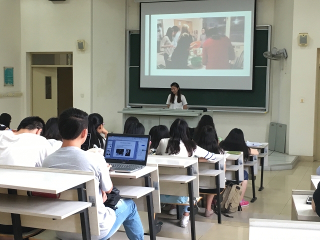 2016年6月16日,英语学院在松江校区5128教室召开了2016年下半年赴海外交流学生行前培训。英语学院副院长王欣、辅导员熊颖哲、外事秘书万小磊和院长办公室秘书黄钰霞参加了会议,来自对外合作交流处及德语系等几个兄弟院系的老师观摩了会议。会议还邀请了上学期在英国莱斯特大学和美国蒙大拿大学留学返校的孟亚琪和李琇琦同学分享了他们的留学经验与体会。
