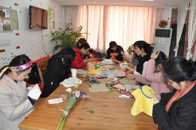 311日下午,英语学院工会“凝聚巾帼共筑梦想”2016三八节主题茶话会活动,活动在逸夫会堂的教工之家举行,学院党总支书记孙俭、工会主席高筠老师及学院的二十多位女教师共同参加了此次活动。此次活动内容多样、形式活泼,有的大展厨艺,烘焙了可口又可爱的各式糕点,有的热爱插花,把各色的花草搭配的生动多彩,还有的做起女红,当了一回贤惠的绣娘,用针线为亲人绣制满满的情意。大家沉浸在闲适惬意的氛围中,其乐融融,在欢声笑语中度过了一个愉快的下午。参加活动的老师们纷纷对学院工会组织这样的活动表示感谢,活动增进了同事们之间的友谊,在紧张的工作之余放松了身心,希望以后能够多多举办此类的活动,为老师们搭建交流互动的平台。