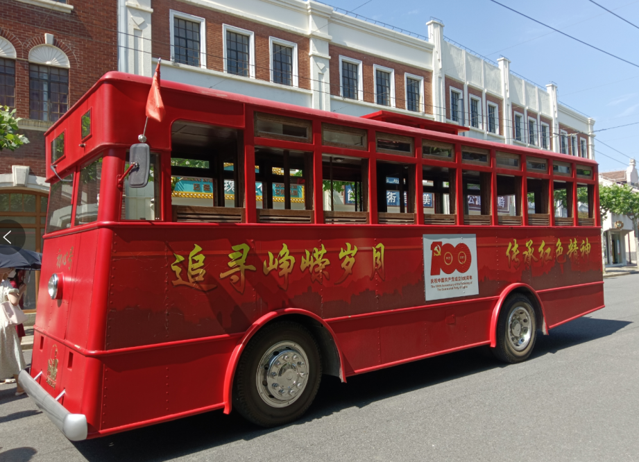 乘坐“初心号”红色巴士,同学们依次经过静安寺站、新青年编辑部、一大会址建筑群、一大纪念红船、南京路、帐子公司、上海大戏院、四行仓库、中共二大建筑群9个站点进行研学,通过互动体验、沉浸参演、展馆参观、影片展映等创新形式,重温1920年《共产党宣言》中文版诞生到1949年上海解放的光辉革命岁月。