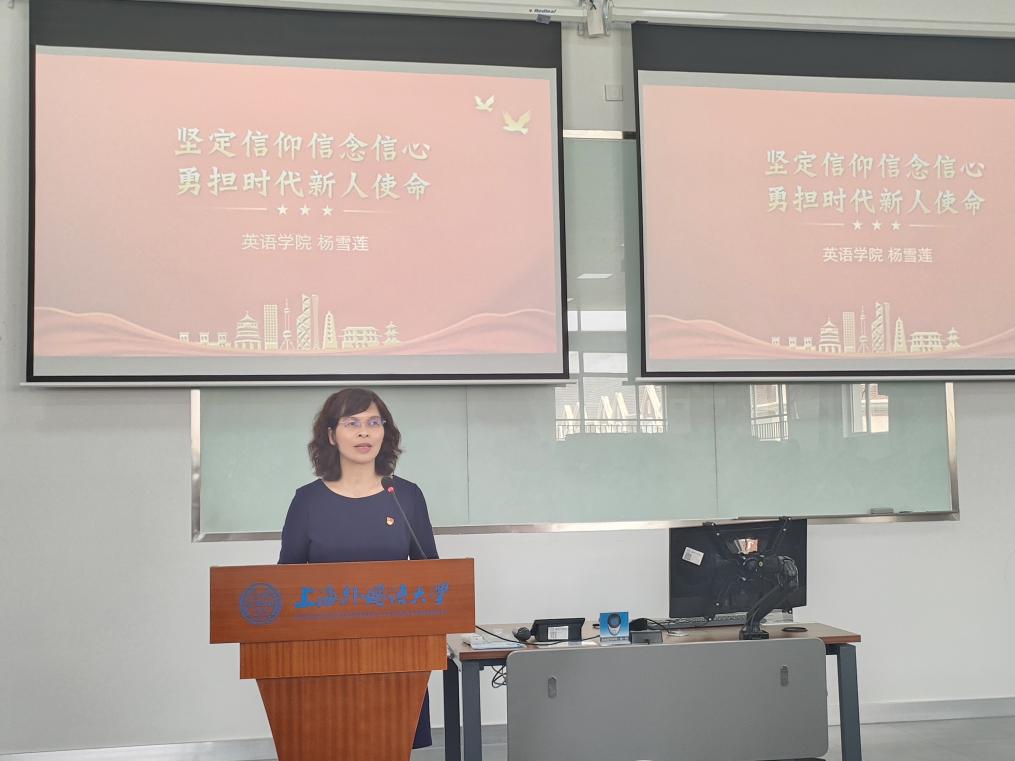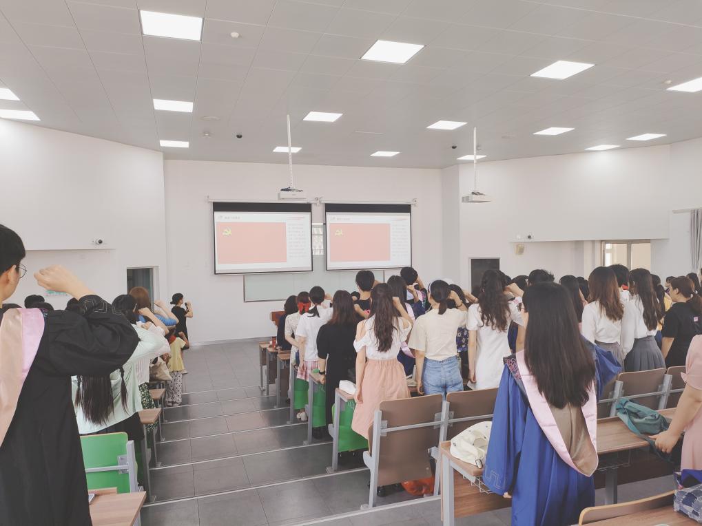 2023年6月8日,在国际歌庄严的旋律中,英语学院2023届毕业生党员离校教育大会正式开始。学院党委书记杨雪莲、党委副书记曹原、专职组织员、毕业班辅导员以及2023届全体毕业生党员参加大会。