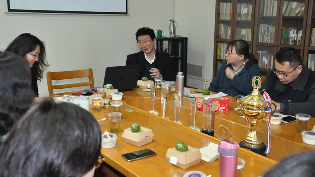 活动在轻松愉快的氛围中开始。首先,王欣老师以“人文化英语教育与跨文化深耕能力培养”为主题,阐释了人文化教学理念之下的人才培养,学生通过联想思维习惯的培养,建构自主学习的动力,在跨文化交际能力提升的同时,不断提高跨文化深耕能力,实现自我的可持续成长。王老师以诗歌教学为例,谈到了课堂教学中如何实现教材的调整与丰富,以及如何在教学中实现启发、对话、联想的教育方法。查明建老师首先介绍了全国英语专业的现状和各大学英语专业纷纷进行改革探索的趋势,谈学院如何在八年来人文化改革的基础上,再进一步深化专业教育改革。目前,学院正在创建“英语专业人文社科研究型人才培养实验班”,查老师介绍了创建“人文实验班”的初衷、目标和实施方案,希望以“人文实验班”作为专业拔尖创新人才培养的探讨平台,加大专业改革的力度,探索高端化、精英化、专业化人才的培养机制,及时总结经验,向全院推广。通过实验班的创新模式和标杆作用,整体提升学院人才培养的水平,打造一流本科,并由此促进研究生教育改革,实现由偶然到必然、由个体到群体的高端专业人才涌现。