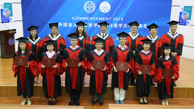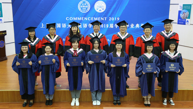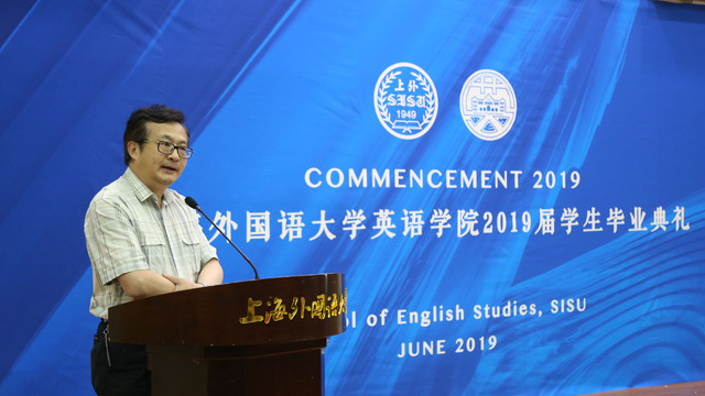 2019年6月21日,上海外国语大学英语学院“英华正茂”2019届研究生、本科生毕业典礼在松江校区图文东厅隆重举行。院长査明建教授、党总支书记杨雪莲老师、常务副院长王欣教授、副院长孙会军教授、党总支副书记曹原老师、研究生导师代表、本科生教师代表及学院学生辅导员、行政老师代表和部分学生家长参加了典礼,为即将离开母校的30名博士毕业生、150名硕士毕业生和162名本科毕业生送上毕业祝福、提出殷殷期望,共同见证英华风采,传承人文精神。